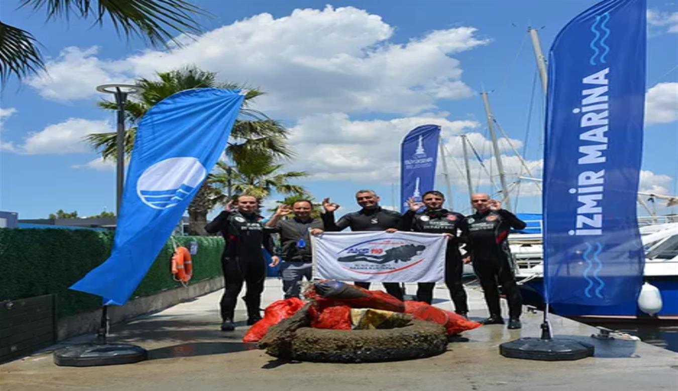 As part of the 5 June World Environment Day events, a sea cleaning event was held in İZMİR MARİNA in cooperation with the İzmir Fire Brigade Diver Team and the İzmir Metropolitan Municipality Climate Change and Environmental Protection Control Department.