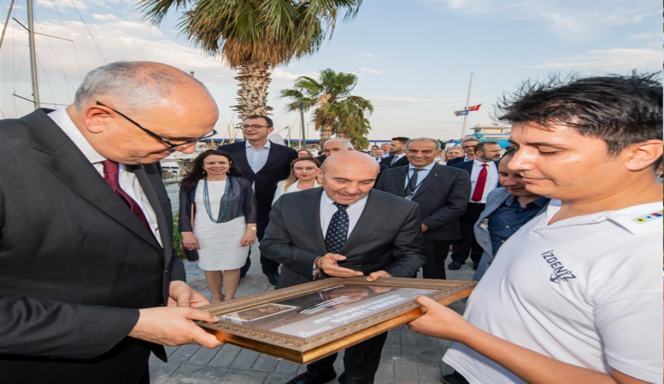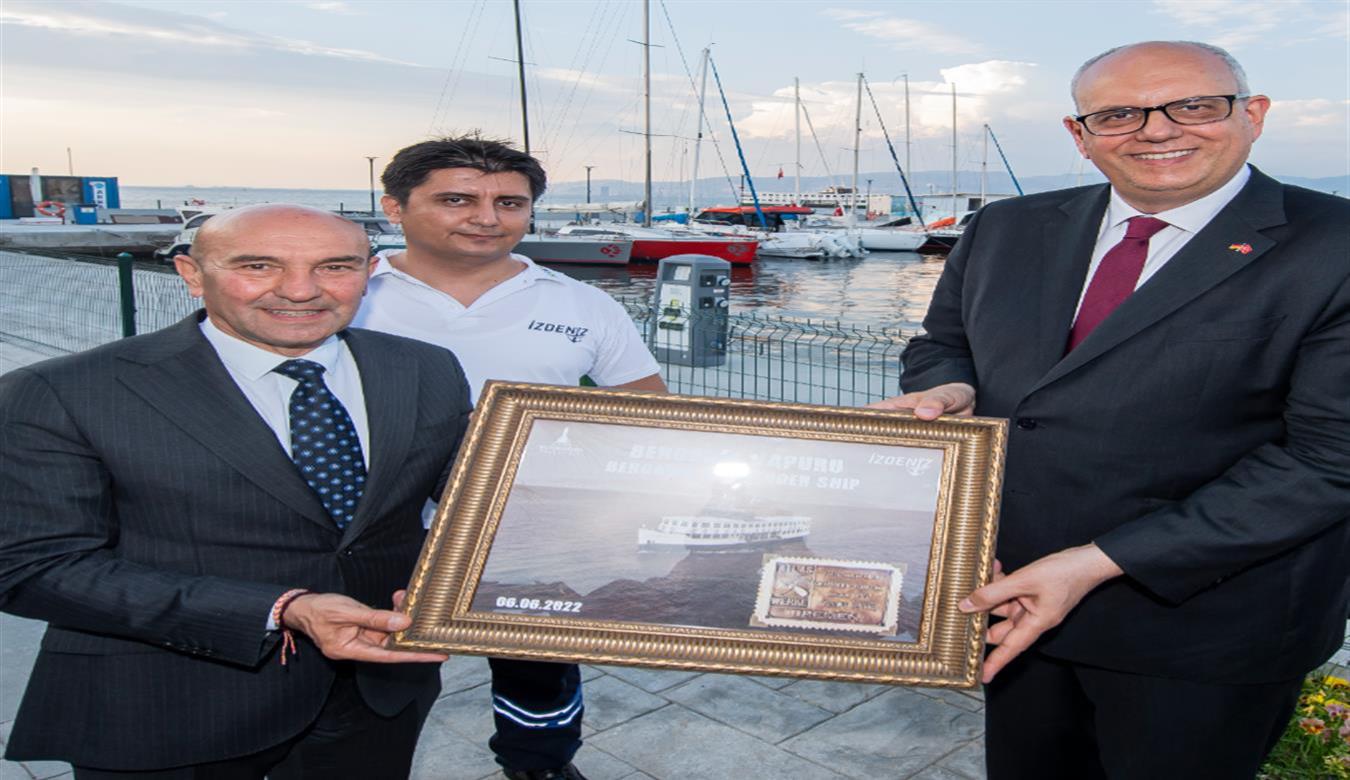 Coming to Turkey for the twenty-fifth anniversary of the sister city relationship between Bremen and Izmir, Germany's Bremen Mayor Dr. Andreas Bovenschulte and his delegation visited İzmir Marina. During the visit, the historical story of the Bergama Ferry, which was built in Bremen, Germany in 1951 and continues to serve in the Izmir Gulf, was conveyed and he expressed his great pleasure to hear that the relations between the two cities date back many years. A framed painting, including the production certificate of the Bergama Ferry, was presented to Andreas Bovenschulte by the Mayor of Izmir Metropolitan Municipality, Mr. Tunç Soyer