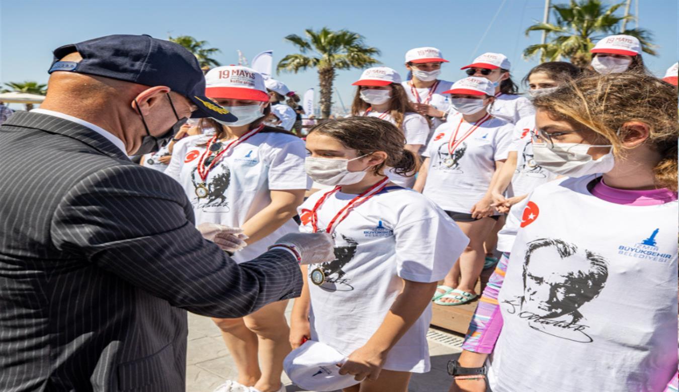 The opening ceremony of İzmir Marina, İzmir's meeting point with the sea, was held with the participation of İzmir Metropolitan Municipality Mayor Tunç Soyer. The opening ceremony was held with water sports performances by young athletes in the pool and in the sea.